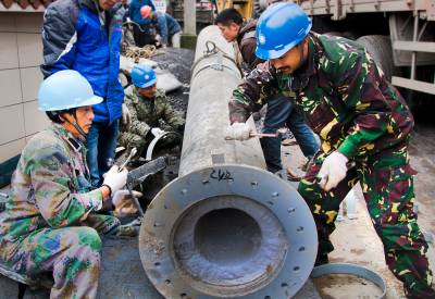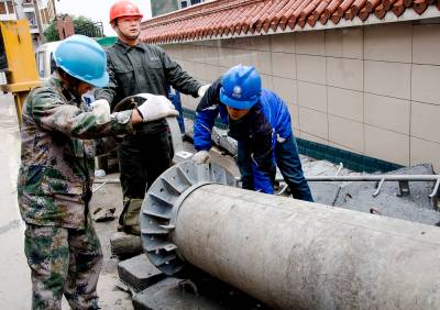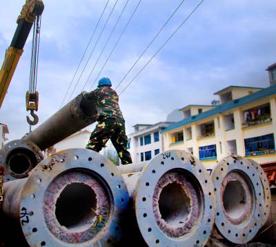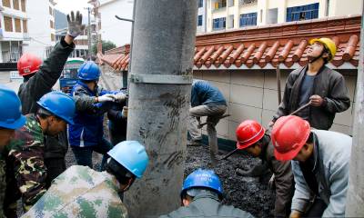 2013年12月11日,工人们正在黄金洞集镇上进行电网改造施工。近日来,为了让集镇居民安全、放心用电,投资125万元对黄金洞集镇进行电网改造。让集镇居民过一个祥和的春节。本报视界网 吴朝军摄15347000296