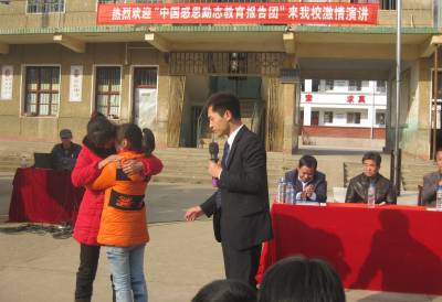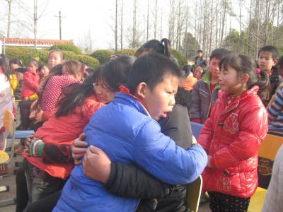 “妈妈,我爱你!”“妈妈,谢谢您的养育之恩!”为了让学生学会感恩,孝敬父母,回报社会,12月11日,中国感恩励志教育报告演讲团来到安陆市王义贞镇星火小学。他们激情投入的演讲感染了现场的学生和家长,众多同学争相拥抱父母,向父母说出心中的爱和感激之情。 (本报视界网:王代金 摄影)