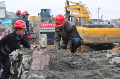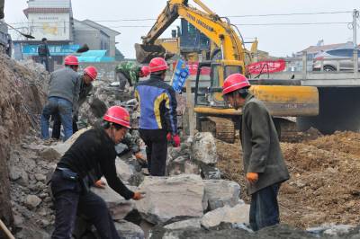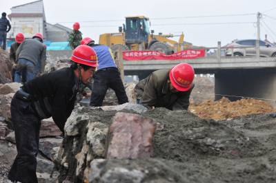 12月11日,在湖北省襄阳市杨叉河流域防洪治理工程一标段,施工人员正在加紧进行加固挡土墙建设。该工程总投资2667万元,已完成施工围堰5.6公里,挡土墙0.61公里等,预计明年3月底前完成主体工程,将提高杨叉河的防洪能力,改善沿河景观,大大提高周边城市品位。 安富斌 曾庆红 摄
