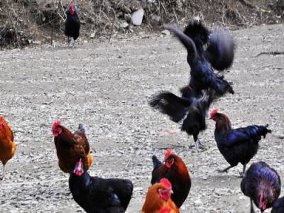湖北来凤县大河镇村民,本来在浙江一家凉席加工厂打工,他发现养殖生态鸡投放农历村街市场,有利可图,于是就在离村子不远的山林里、茶园中养殖本地土家,由于鸡吃的是山里的虫子,饮的史大山中的矿泉水,生态鸡投放市场后价格每公斤售价达40元,他的1000多只生态鸡,尽获利6万余元。(本报视界网潘家文摄影)