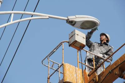 谷城县供电公司服务亮化工程 12月13日,谷城县供电公司路灯管理所职工正在检修路灯、为灯杆重新刷漆换“新装”。随着元旦、春节的临近,该公司抓住当前晴好天气,对县城主要道路、街道线路、路灯、灯杆进行检修,服务亮化工程,方便市民出行。 本报视界网马明刚摄
