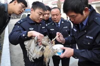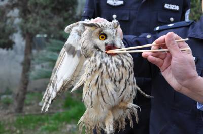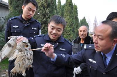 民警救助猫头鹰 康复后放归大自然