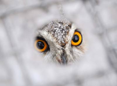 经过检查,这只受伤的猫头鹰体长约25厘米,翼展约80厘米,身体缠绕着透明丝网,可能是误闯不法分子捕猎野生禽类的丝网,逃脱时身体受伤才跌落在地。(本报视界网 周林利 卢微 摄)