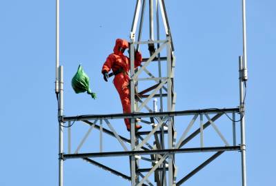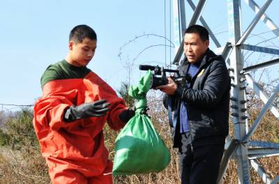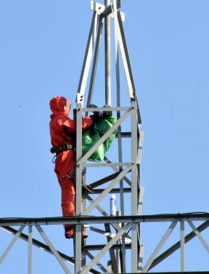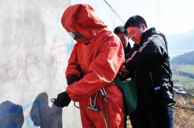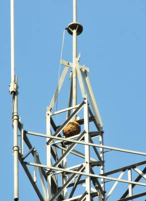 12月13日,郧县公安消防大队在100多公里外的汉江南岸五峰乡鲍家河村将移动公司30米高的发射塔塔顶马蜂窝成功摘除,有力的保障了农村宽带上网设备的后序安装。移动郧县公司在普及农村宽带过程中发现五峰乡鲍家河村二组山梁上30多米高的铁塔顶上有一个直径50多公分的马蜂窝威胁安装设备工人的安全。每年秋季郧县许多村民被马蜂哲成重伤或死亡,为保证设备顺利安浆装,移动郧县公司向郧县公安消防大队求援,郧县公安消防大队迅速派出战士随车出发,由于南水北调中线工程汉江南岸公路复建,只的绕道十堰市向五峰乡进发,经过两个多小时的行程来到五峰乡鲍家河村二组山梁上已是中午,己是五年军龄的武警消防下士王俊涛很快穿上防护服爬上30多米高的铁塔顶上,用编织袋将直径50多公分的马蜂窝套进囗袋摘下,然后将袋囗扎好扔到地面,然后用杀虫喷雾剂喷洒盘旋周围的马蜂和蜂窝残点,很快下到地面收回袋装马蜂窝挖坑埋掉,摘除30多米高的铁塔顶上有一个直径50多公分的马蜂窝顺利结朿。