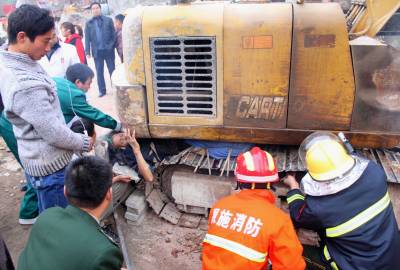 男子工地作业被压挖掘机下 巴东消防成功营救