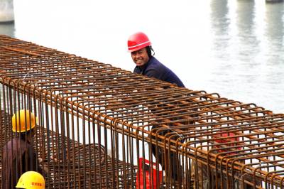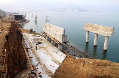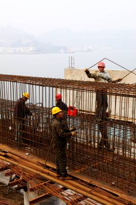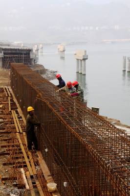 12月14日,工人正在加紧建设秭归货运码头。