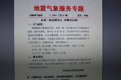 12月16日13时04分,湖北省巴东县城附近发生5.1级地震,震源深度5千米。多数居民慌忙跑下楼避险,乡镇部分路段山石垮落。恩施州气象局得知此情后,局领导迅速组织气象台预报员会商并作出《地震气象服务专题》发完灾区地方政府应急办,为地方政府抢灾救灾提供准确及时的天气参考。