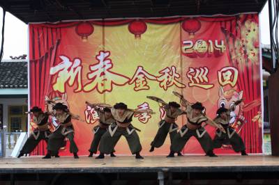 2013年12月13日,湖北省恩施土家族苗族自治州宣恩县非物质文化遗产传承展演中心的演员们,冒着严寒在万寨乡伍家台村慰问演出。 当日,由宣恩县文化体育局组织举办的宣恩县“2014新春金秋巡回演出季活动”在万寨乡伍家台村拉开帷幕。旨在歌颂新农村建设,展示精神文明建设成果的宣恩县“2014新春金秋巡回演出季活动”作为文化惠民,送戏下乡的一项主要内容,将在全县9个乡(镇)279个行政村进行巡回演出。 (本报视界网 张子家摄) 宣恩县文体局13886777177