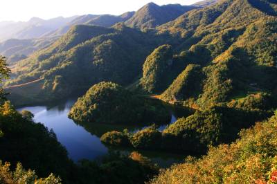 湖北南漳:一汪湖水映晚霞