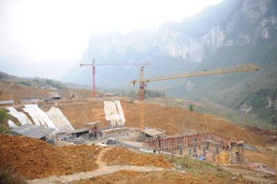12月12日,恩施大峡谷山水实景演出剧场建设现场一派繁忙。