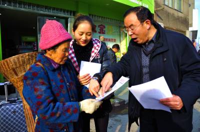 12月17日,在恩施市红土乡集镇街头,工作人员正在向赶集村民宣传肝病免费普查公益帮扶活动有关知识。