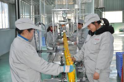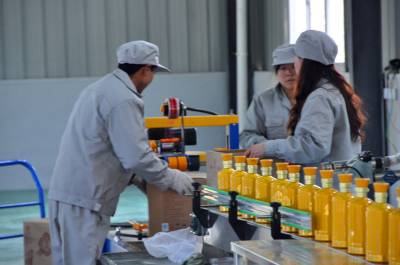 17日,在鹤峰经济开发区太平绿色食品园里,湖北双鹤春酒业有限公司鸾凤生产车间工人正在为销售江苏鸾凤酒装酒出厂。湖北双鹤春酒业有限公司是去年招商进入鹤峰县工业园区的企业,总投资5000万元, 不到一年时间,通过鹤峰经济开发区悉心服务,到目前生产鸾凤酒1万件,销售江苏和武陵山区县市,实现销售额500万元。(本报视界网 何吉安)