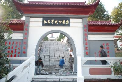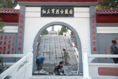 金果坪乡维修翻新烈士陵园 12月17日,几名工人正在红三军烈士陵园镶嵌大理石台阶。革命老区金果坪乡境内的红三军烈士陵园,段德昌烈士墓等革命遗址,由于历经多年的风吹雨打,碑文油漆脱落,字迹模糊,为有效保护革命遗址,使之成为党史教育、路线教育和爱国主义教育的主阵地,该乡筹资57万余元,对红三军烈士陵园、段德昌烈士墓、17座散葬烈士墓地以及一处无名烈士墓地等革命遗址量身定制修缮方案,并进行修缮。 巴东县金果坪乡政府陈祥楚