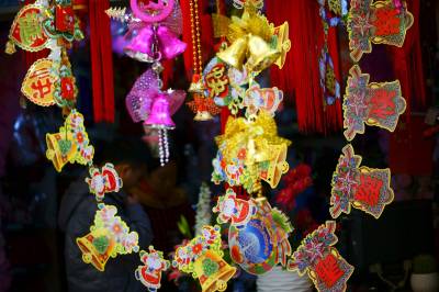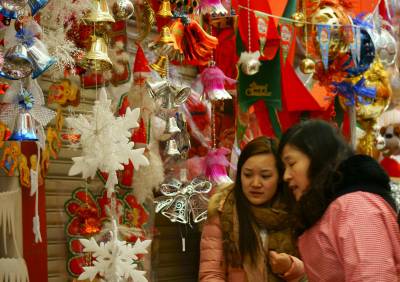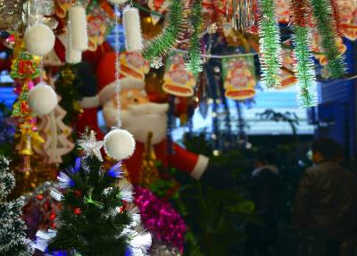12月17日,市民在宜昌长江市场选购圣诞饰品。随着圣诞节日的临近,宜昌市场上琳琅满目的圣诞饰品开始热销起来。本报视界网 周建平 摄
