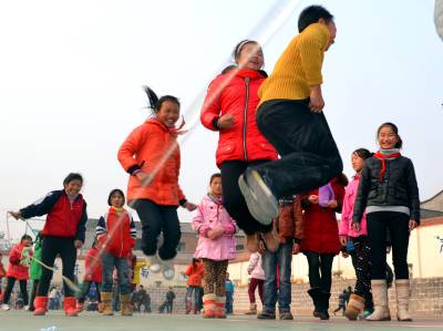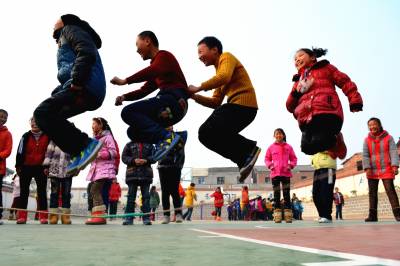 “移民娃”的快乐运动 (通讯员 杨显有)12月18日,学生们在课间开心跳绳。湖北省郧县柳陂镇中心小学进入冬季锻炼季,来自当地移民区的500多名在校生每天课余时间都进行青蛙跳、赛踢毽、跳皮筋、广场舞等体育活动,学生在愉快的运动中,强健了体魄,提高了抗寒能力。 (湖北省郧县柳陂镇中心小学 杨显有 442532 13277199605)