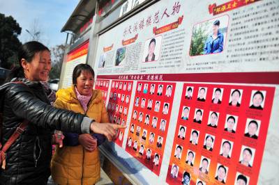 近日,三峡坝区“门户”宜昌市夷陵区乐天溪镇的“百名孝老爱亲道德模范”群像图在各公共公开场所集中亮相,这些道德模范人物弘扬真善美、传递正能量的感人故事,成为村民们在文明创建和公民道德建设中继承传统、弘扬美德的鲜活教材。该镇通过广泛宣讲这些道德模范人物的先进事迹,在三峡坝区形成了“知荣辱、讲文明、树新风、促和谐”的社会新风尚。 本报视界网 张国荣 摄