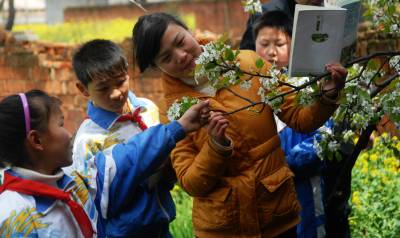 诵国学经典育时代新人——湖北省武穴市花桥小学国学经典诵读活动侧记”随风潜入夜,润物细无声”。湖北省武穴市花桥小学自2006年开展国学经典诵读活动以来,全校师生都沉浸在与圣贤为友、与经典同行的氛围里。通过每天早晨20分钟的集体”阳光阅读”、上午15分钟的”口语交际”、下午30分钟的”快乐阅读”,让《三字经》、《弟子规》、《增广贤文》、《千字文》和上百首古诗词不断的在学生中传诵着,校园里到处都飘扬着经典国学名篇的墨香味。经典诵读活动提升了该校师生的文化素养和人文底蕴、加强了校园文化建设,营造了优良的校风学风。让家长们高兴的是,孩子的识字能力、朗读能力提高了,自信心增强了,待人接物文明多了;让老师高兴的是,学生的习作中时常洋溢着诗文的韵味。愿”书香花小”之花越开越艳!在该校的带动下,武穴市已有40余所小学开设了国学经典课。25日,花桥小学国学教师胡丽娜带着学生走进春天的世界里,寻找大自然与国学对接的美(图01)!教师戴国华带领学生们实地感受国学所描述的田园风光(图03)。湖北省武穴市委冯怡红刘胜德摄影报道13707253878邮编435400