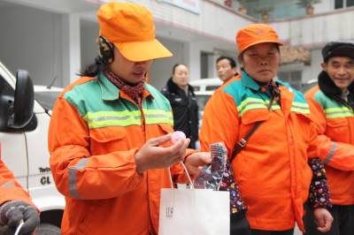 呵护城市美容师 12月18日,企业负责人把冬季护肤品送到恩施州城环卫工人手中。 当天,恩施美谛丽莎化妆品公司负责人走进恩施市环卫处,为全市的650名环卫工人们送去温暖,为他们发放护手霜、御寒手套等物品,向一线环卫工人的辛勤劳动表示感谢,并呼吁更多的人能够关心、体谅环卫工人的工作。 视界网 谢顺 陈兴璐 摄 恩施市新闻中心 谢顺 13277590198