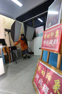 李盼,21岁,湖北襄阳职业技术学院护理专业大三学生。12月上旬,她在襄职天空大学生创业园“晒梦街”开了间最初印象时尚摄影工作室。为了占领校内市场,她投资近五万元采购了摄影灯、打印机、电脑等,把工作室的业务从拍登记照扩展到照片马克杯、高档相框等。效益最好时,一天也有近百元收入。