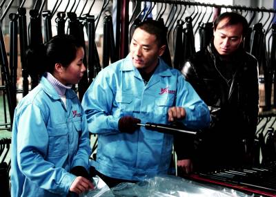 12月19日,湖北省武穴市龙坪镇朱河村工业园扬飞减震器制造厂内,技术人员正指导工人生产。在浙江打工8年的李重阳先生带着技术和资金在家乡武穴市龙坪镇朱河村创办的扬飞减震器制造有限公司,生产的汽车减震器成为湖北省奥迪、富康、现代、大众等系列同类产品生产、销售第一家,2012年纳入武穴市规模企业系列。公司现生产能力30支,销售收入2600万元,明年将扩大到100万支,50%的产品将出口到韩国、日本和新马泰等国家。 本报视界网冯怡红 摄