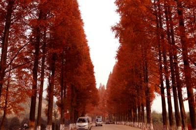 柳杉,乔木,高达40米,胸径可达2米多;树皮红棕色,纤维状,裂成长条片脱落;大枝近轮生,平展或斜展;小枝细长,常下垂,绿色,枝条中部的叶较长,常向两端逐渐变短。叶钻形略向内弯曲,先端内曲,四边有气孔线,长1-1.5厘米,果枝的叶通常较短,幼树及萌芽枝的叶长达2.4厘米。每到秋冬季树叶变红,随后落掉。在十八里长峡自然保护区分布较广。