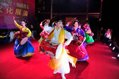 当晚,中韩两国演员、部分民众欢聚一堂,共叙中韩情谊。韩国国际文化公演交流会艺术家表演了《韩国传统长鼓舞》、《太平舞》、《南道民谣》、《去煞舞》、《扇子舞》、《韩国京畿民谣》等具有代表性的传统文化艺术,展示了地道的韩国文化。