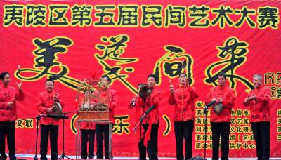据悉,夷陵民间器乐“十样景”又名“酥乐”、“背鼓子”,由牵子鼓、围鼓、锣、钹、马锣子一对、铃子、钻铅各一个、唢呐两支等十样乐器组成,系夷陵堂调其中的一种民间吹打乐。当地“十样景”曲目繁多,共九大类,演奏变化多样,俗有36牌子72调子之说。
