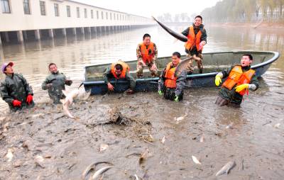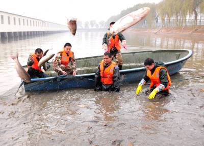 科技园喜获丰收 12月25日,武警湖北总队农业科技示范园的战士们正在池塘捕鱼。元旦即将到来,他们将收获的绿色农产品配送到驻武汉各基层分队,为他们送去节日加餐的最好礼物。