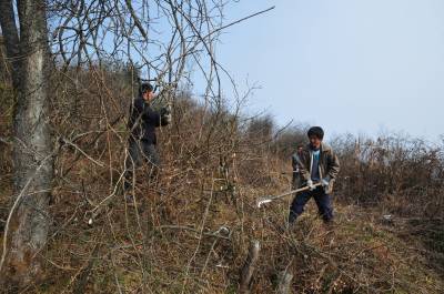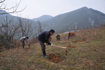 12月25日,在恩施市板桥镇大山顶村中淌组,刚从农民转身为工人的村民们正忙着冬季育林。