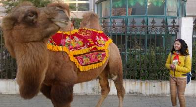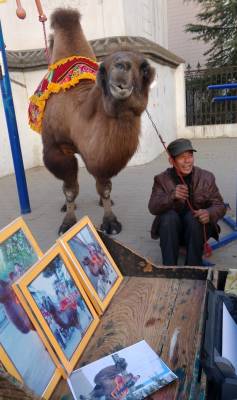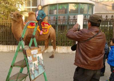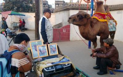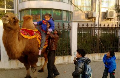 > 小学门口的“骑骆驼照相”