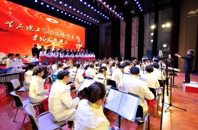 当日,市职工艺术团200多名演员带来了舞蹈、民族交响乐演奏、京剧等文艺节目。民族交响乐齐奏《庆祝》、《我的祖国》,女声小组唱《洪湖水浪打浪》、《这里的春天最美丽》,男声独唱《心中炉火正通红》,魔术《逃生术---大变活人》,京剧演唱《梨花开》等表演让在场观众掌声雷动。