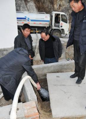 12月30日下午,2台拉水车不停的向郧县大柳乡畜水池内送去饮水。由于郧县半年多没有下雨,入冬来又没有下雪,造成境内许多河溪断流,海拔800米以上乡村出现饮用水困难,为此各乡镇动用拉水车为缺水山村送去饮水。 夲报视界网周家山 摄