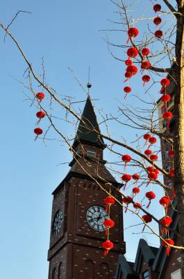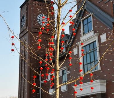 “虎座凤架鼓”街灯亮眼