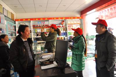 1月1日,在恩施市红土乡农贸市场上,经济普查员手持PDA设备正在个体经营户家中采集有关信息。