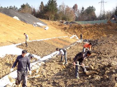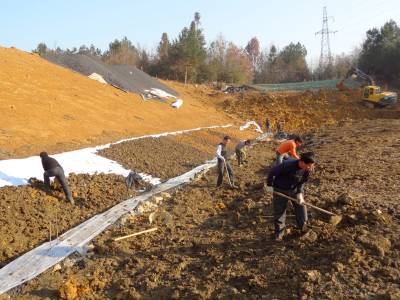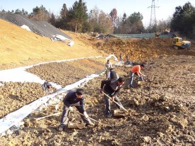 巴东整修病险水库解民忧 元月1日,数名工人正在巴东县金果坪乡四岔湾水库建设工地铺设土工膜治理渗漏。位于巴东县金果坪乡境内的四岔湾和东红水库建于上世纪六十年代,由于年久失修,既不能用于农田灌溉和牲畜饮水,多雨季节又容易出现险情,危及水库下游群众生命财产安全,为消除这一安全隐患,县水利局筹资320万元,采用土工膜施工技术解决渗漏问题,继而对坝体进行加固,增设溢洪道,维修损坏的排供系统。这两座水库整修后,可新增灌溉面积2100多亩,4000多村民直接受益。