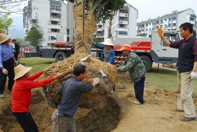 移栽树木本报讯(通讯员林鹏)3月28日上午,秭归县园林所工作人员正在吊运补植的桂花树。开春以来,秭归县林业部门累计投入100多万元将银杏树、樟树、桂花树等2000余株树木进行移栽或补植,给街头增添绿色景观。