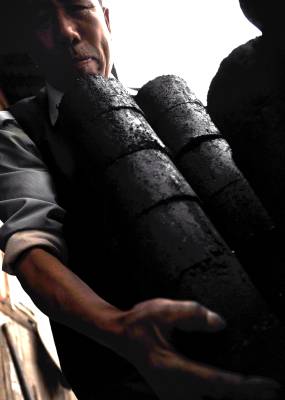 3月28日,宣恩县城郊一蜂窝煤加工厂里两名工人在加工煤球。”如今县城郊区就剩下两个煤球加工厂,每个厂有两个人加工就足以保证整个城区的煤球供应。”一名工人说。一个时期以来,蜂窝煤风靡于城市的各个角落,成为城镇居民生活的必须品,而城区附近数十家煤球厂向城区供应煤球仍然需要提前预定。上世纪末到本世纪初,随着电能、太阳能、天然气等清洁能源的快速发展并深入民众生活,蜂窝煤这一”时代的宠儿”在倡导”低碳”生活的今天,逐步退出历史舞台,向广大民众挥手告别。(视界网签约摄影师:宋文摄)