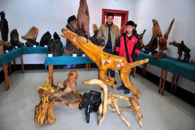 目前,李在禄已创作50多件根雕作品。李在禄说:“创作根雕是他自己的梦想,一直会坚持下去。”他希望结识更多的根雕爱好者,与他们交流切磋,传承民间技艺。本报视界网 张国荣 摄