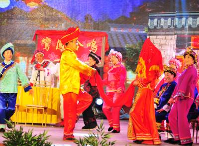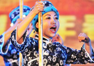 当晚,巴东县举办2014年“幸福巴东”电视春节联欢晚会,现场直播了现代歌舞、小品、情景舞剧及民俗类节目,为全县50万人民上演了一道新年文化大餐。(本报视界网 梁勇 摄)