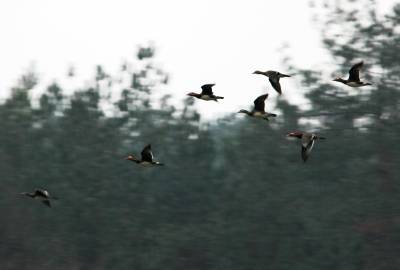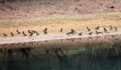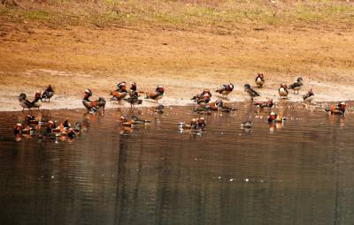 数百鸳鸯在远安过冬 1月6日,一群鸳鸯在远安县河口乡巩峪村白茶口一带的漳河边戏水。近年来,因为三峡大坝蓄水,生态环境的改善,引来了数百只南下越冬的鸳鸯,也吸引了大量摄影爱好者。当地村民相继成立了野生动物保护巡逻队,并加强了河流、水库周边森林植被保护措施,鸳鸯数量呈逐年增多趋势。(通讯员温宜飞摄)