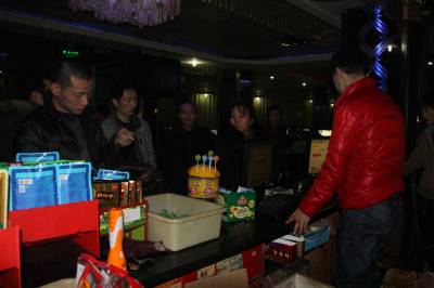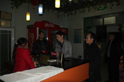 2014年1月6日晚,宣恩县文化市场综合执法大队执法人员在珠山镇盛大网吧检查上网人员实名制登记的情况。