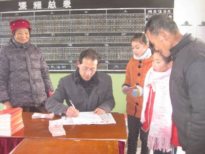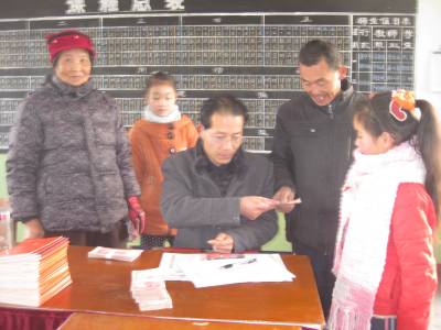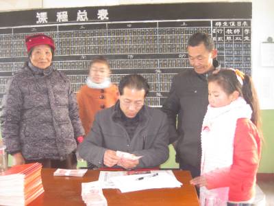 元月9日,在安陆市王义贞镇中心小学2013年贫困寄宿生补助金发放现场,众多学生家长带着孩子签字、领取。据了解,按照国家政策,该市共有9744名农村义务教育阶段困难学生领取了贫困寄宿生活补助,每名初中生每年补助1250元,每名小学生每年补助1000元,全市发放总金额为10713750元。 (本报视界网 王代金 摄影报道)