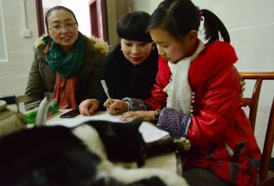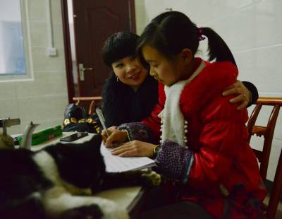 1月8日,从浙江海宁赶回家乡建始县高坪镇的“爱心妈妈”黄晓雪(中)看望自己“女儿”王利,为她送来节日礼物,鼓励她好好做作业,听外公外婆话。连日来,该镇妇联和计生办发出倡议,鼓励全镇50多位“爱心妈妈”当好代理家长,给予留守在家的儿童在学习和生活上帮助,让他们寒假不孤独,愉快过上春节。本报视界网刘波、韩国兴摄 建始县新闻中心刘波联系电话13032794298