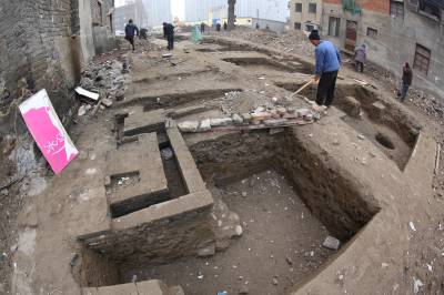 1月10日,据襄阳市考古工作人员介绍,在位于湖北襄阳市市中心的樊城区火巷口考古工地上,随着考古工作的进展,从最初的明清时期的钱币和瓷器,到陆续出土的水井、砖铺路面、地窖和神台,一座明清时期寺庙庭院的完整轮廓正在显现,这里已发现的两块带文字上午砖,其文字为“某某庙”。加之水井、神台等设施,逐渐与考古专家的预计相吻合:这是一座经过两次重建的寺庙庭院。