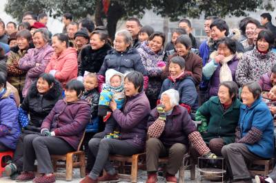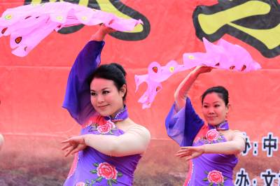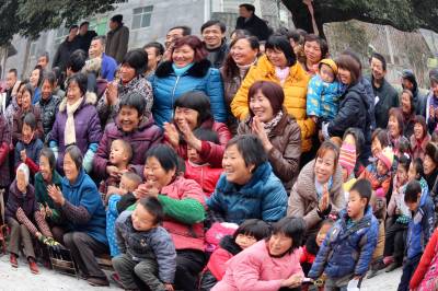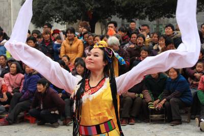 2014年1月10日,在湖北省十堰市郧县五峰乡“三下乡”活动现场,文艺工作者正在表演精彩的文艺节目。当日,湖北省十堰市郧县2014年文化、科技、卫生“三下乡”活动在五峰乡举行,活动组在现场开展文艺表演、科普宣传、健康体检、送春联、送书籍等活动,丰盛的“文化大餐”深受当地群众欢迎。春节期间,活动组将在10个乡镇开展此项活动,以此丰富群众的节日文化生活。
