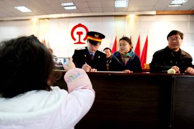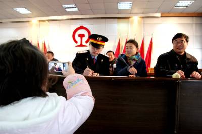 1月11日,一名4岁女孩用大人的手机为正在主席台签《春运家庭安全包保合同》的爸妈拍照。当天,武汉铁路局襄阳机务段组织召开春运家庭安全包保合同签订会,现场有10个火车司机职工家庭先后与段工会签订了家保合同。随后,该段2200多名火车司机及家属将分别与段里签订“职工班中遵章守纪,按标作业;家属做好”家庭政委”,保证职工吃好、休息好,共保春运安全。”的家保合同书。至此,该段已提前进入春运状态。 (熊德明 摄)