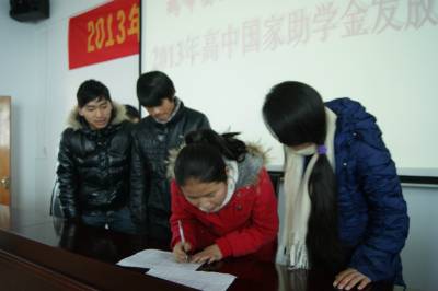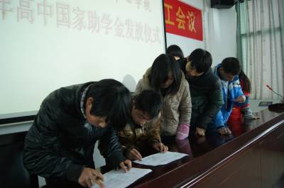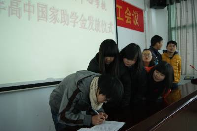 1月10日,鹤峰县走马镇民族中心学校的高中贫困学生签字领取2013年秋季学期国家助学金银行卡。 今年,该县共有696名贫困高中生获得2013秋季学期普通高中国家助学金,助学金额52万元,助学金通过银行卡直达到每位受助学生手中。 据了解,每年度普通高中国家助学金的平均资助标准为每生每年1500元,评审时按照国家助学金管理办法规定等次,即一类2000元/人,二类1000元/人,实行按学年评审、分学期发放。