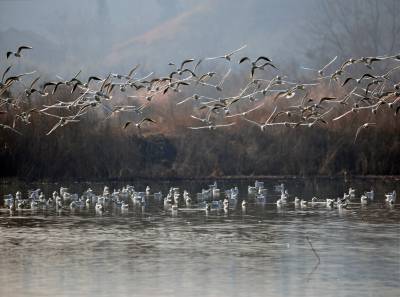 1月12日,梁子湖区涂家垴镇张远村上空迎来数万只鸥鸟,它们迎风展翅,上下翻飞,形成了乡间一道靓丽的风景线。张远村一直对生态植被保护较好,当地几百亩姜家荡渔场养殖的有机鱼,给鸥鸟提供了充足的饵料,这里有它们耐以生存环境,一时成了它们的“天堂”。视界网/方仲华摄