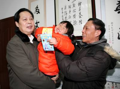 1月12日,著名书画家、全国政协委员汪国新先生专程来到宜昌市猇亭区桐岭新村社区,看望病愈后的李雨涵,并赠送题字“身心双健”。2011年11月,4岁的小雨涵被确诊患上“嗜血综合症”。汪国新先生得知此事后,第一时间为小雨涵捐出2万元善款帮助治病。本报视界网 唐水唐 摄