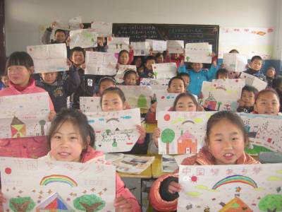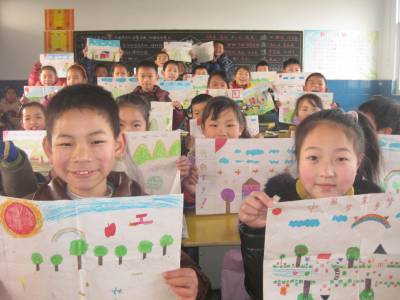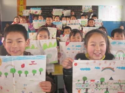 1月13日,安陆市王义贞镇中心小学四年级学生正在展示自己的新年彩画。为了表达自己对新年的祝福与希望,该校三至六年级400多名学生拿起画笔,以“中国梦.家乡梦”为主题,绘出一幅幅美丽的画卷,以表达自己的美好愿望。 (本报视界网 王代金 摄影)